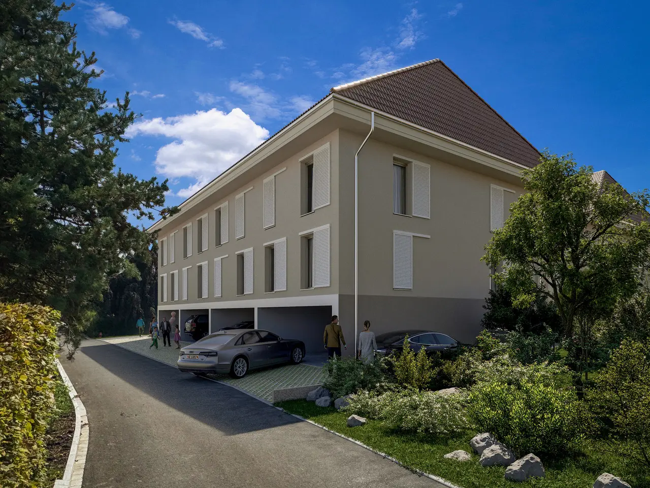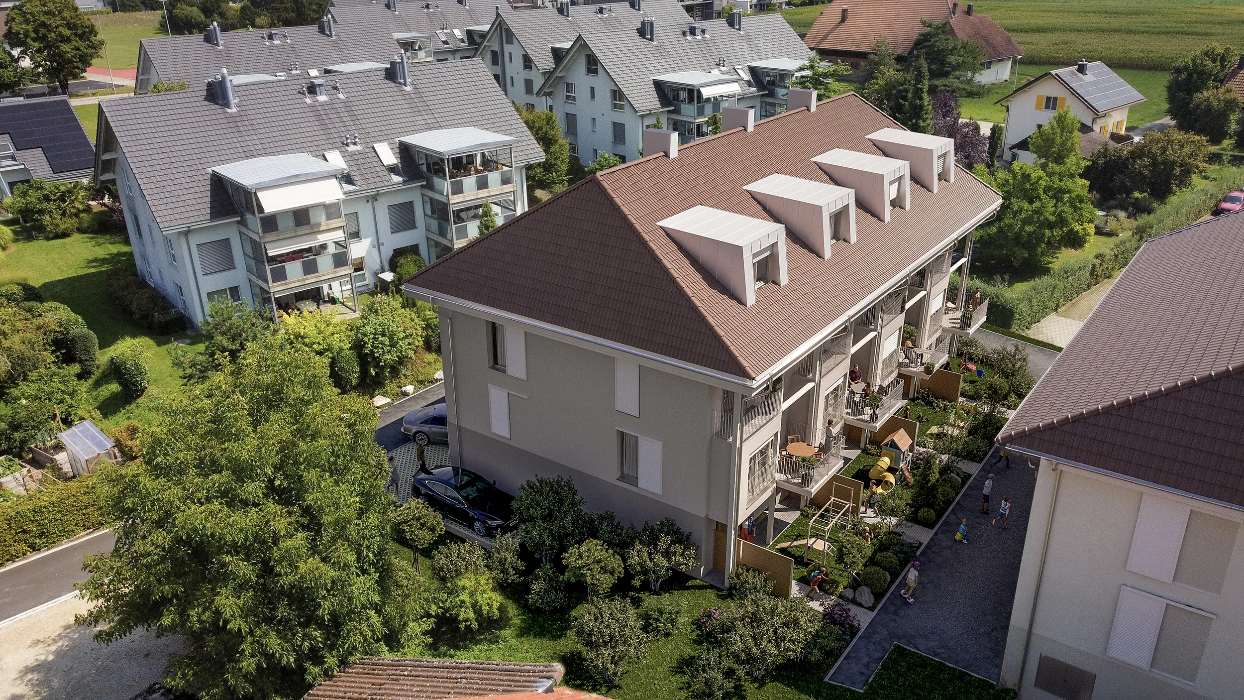 Die Häuser des Neubaus «Quartett» vereinen Komfort, Design und Flexibilität – und sind damit ideal für Familien, die einen Ort suchen, um ein Leben aufzubauen. Jedes der vier Reihenhäuser bietet im Standard 5,5 Zimmer sowie einen optional ausbaubaren Dachstock, der Raum für bis zu drei zusätzliche Zimmer und einer Nasszelle bietet.